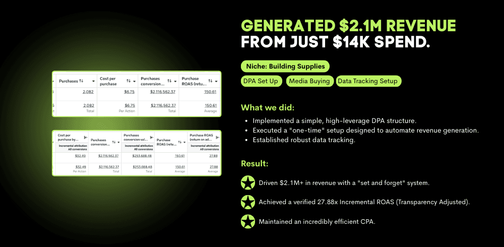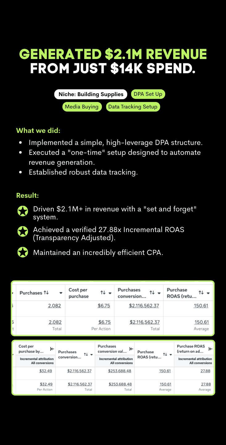 We turn Breakthru Boards into live campaigns using a proven account structure, including Dynamic Product Ads. Creative is launched, tested, and scaled within a stable framework so the algorithm can learn efficiently and performance improves without unnecessary interference.