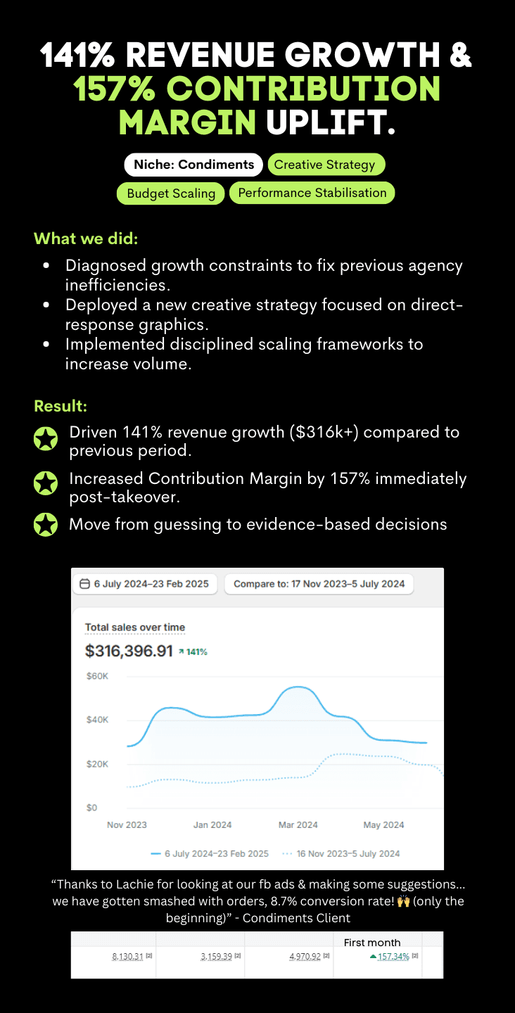 "I would like to leave a rave review! Lachie, with the help of Sophie, runs my meta ads and they have more than 3x my revenue since taking over, WITH a high ROAS/good profitability, and I am just feeling really happy about it ๐ I'm sure the sales and Xmas season will be even better. Thank you Lachie & Sophie ๐๐๐"