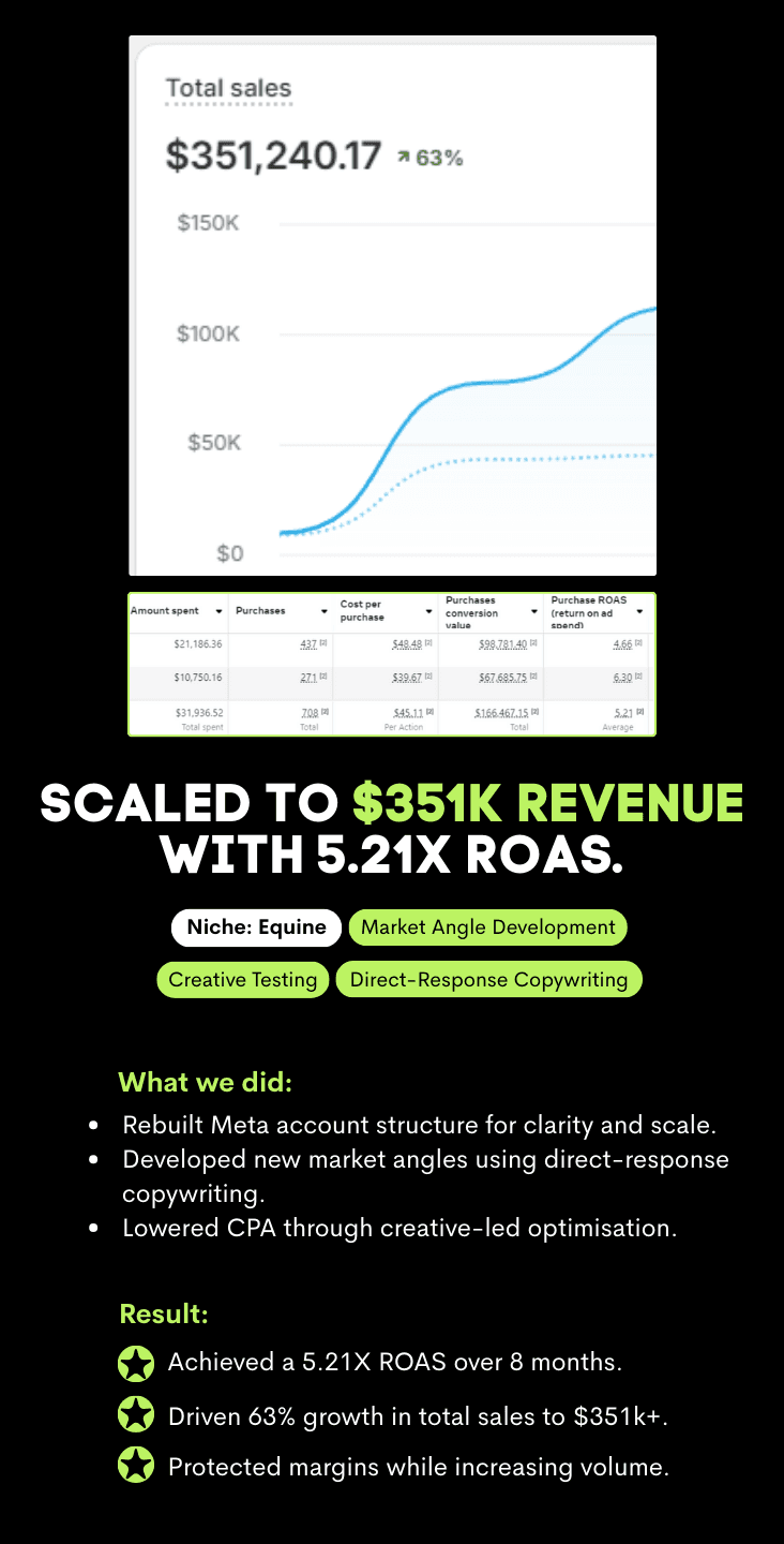 Stop living in Ads Manager. We handle the structure, testing, and optimisation so you can focus on running the business, not managing campaigns.